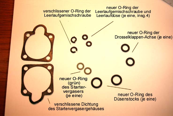 Vergasers reicht ein Dichtungssatz. Siehe Bild 1.